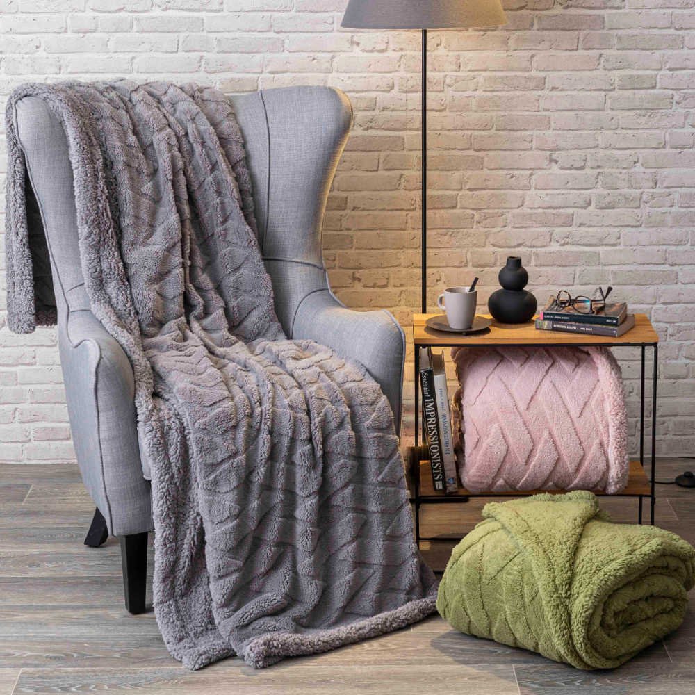 Κουβέρτα/ριχτάρι υπέρδιπλη από ζακάρ sherpa,100% πολυέστερ, μονόχρωμη, με επένδυση προβατάκι sherpa.