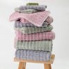 Πετσέτα προσώπου από ύφασμα ζακάρ φροτέ, πενιέ 550 γρ, 100% βαμβακερό, μονόχρωμη, με γεωμετρικό σχέδιο. Διατίθεται σε 3 διαφορετικά χρώματα.
