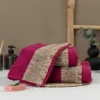 Σετ πετσέτες 2 τεμαχίων, προσώπου και χειρός, από ύφασμα φροτέ, πενιέ, 100% βαμβακερό, με διακοσμητική σενίλ δαντέλα. Διατίθεται σε 3 χρώματα.