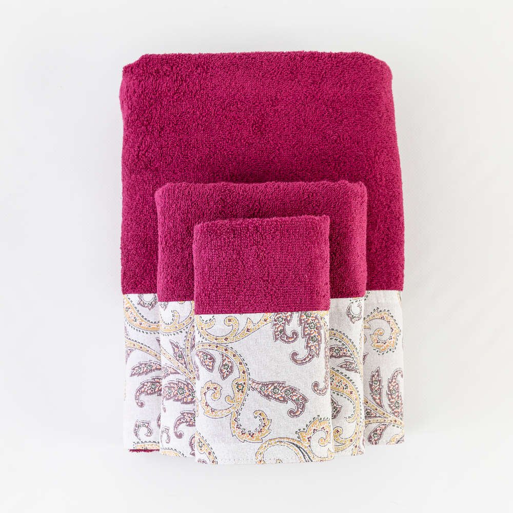Σετ πετσέτες 2 τεμαχίων, προσώπου και χειρός, από ύφασμα φροτέ, πενιέ, 100% βαμβακερό, με διακοσμητική φάσα ύφασμα.Διατίθεται σε 3 χρώματα.