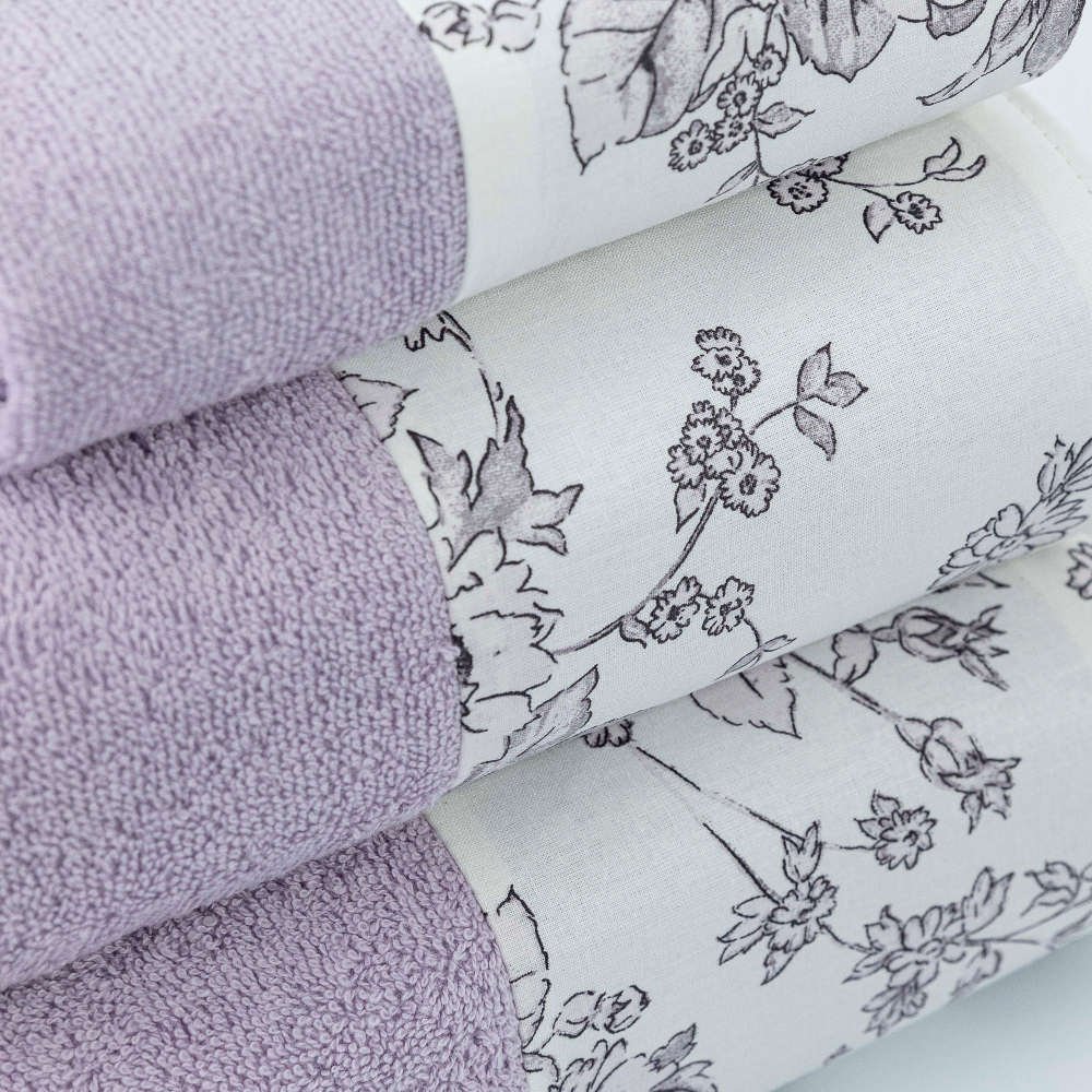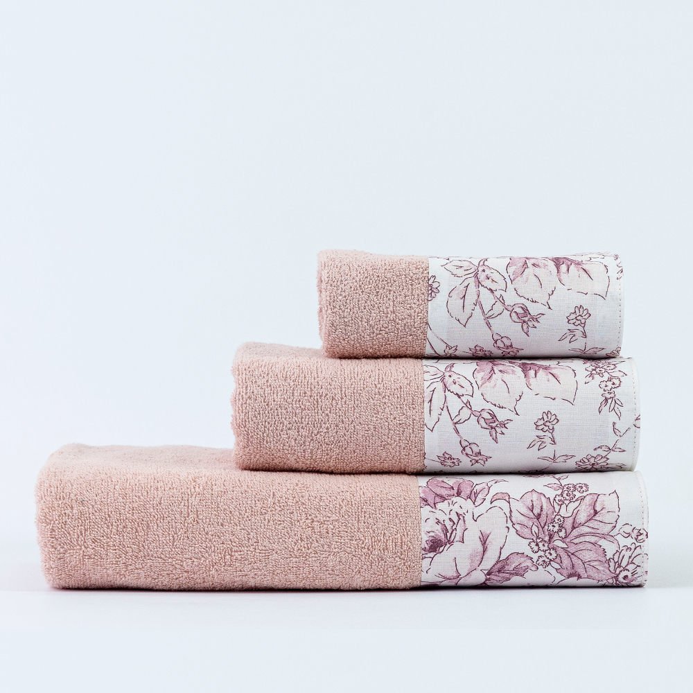 Σετ πετσέτες 3 τεμαχίων, μπάνιου, προσώπου και χειρός, από ύφασμα φροτέ, πενιέ, 100% βαμβακερό, με διακοσμητική φάσα ύφασμα. Διατίθεται σε 3 χρώματα.