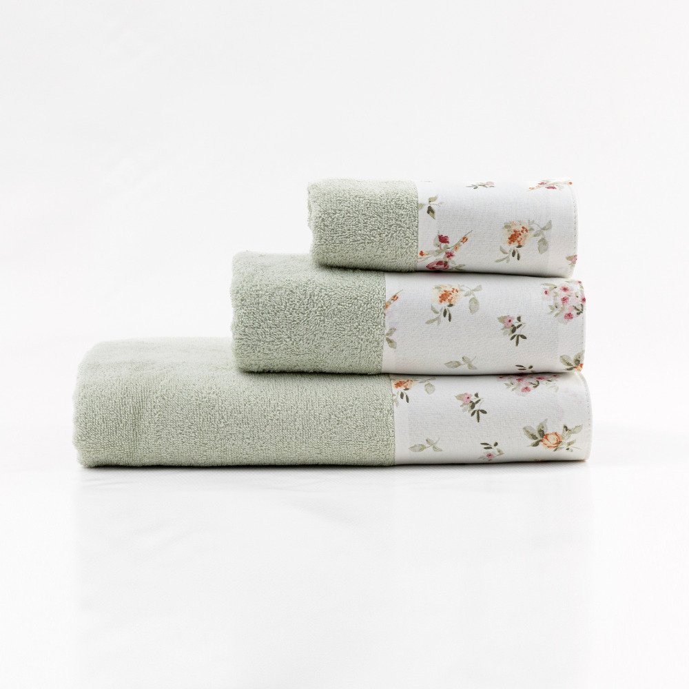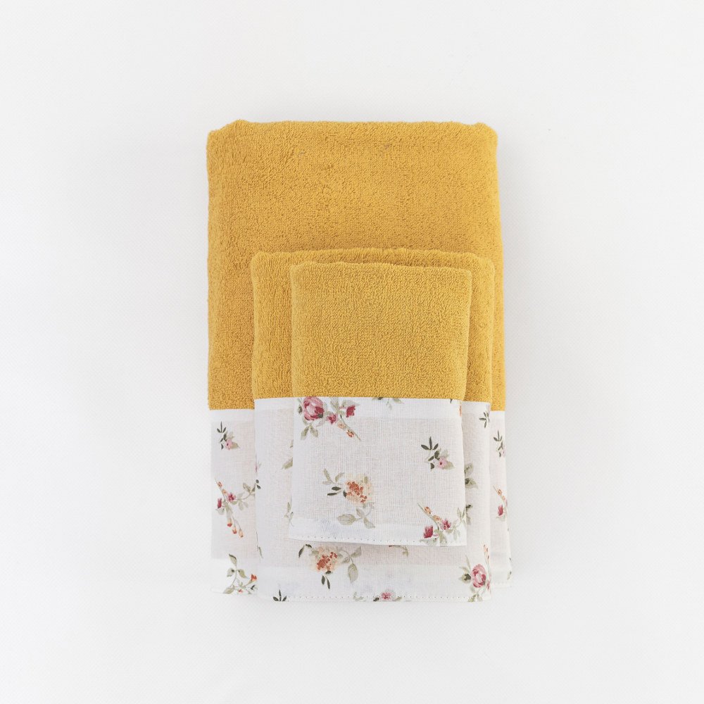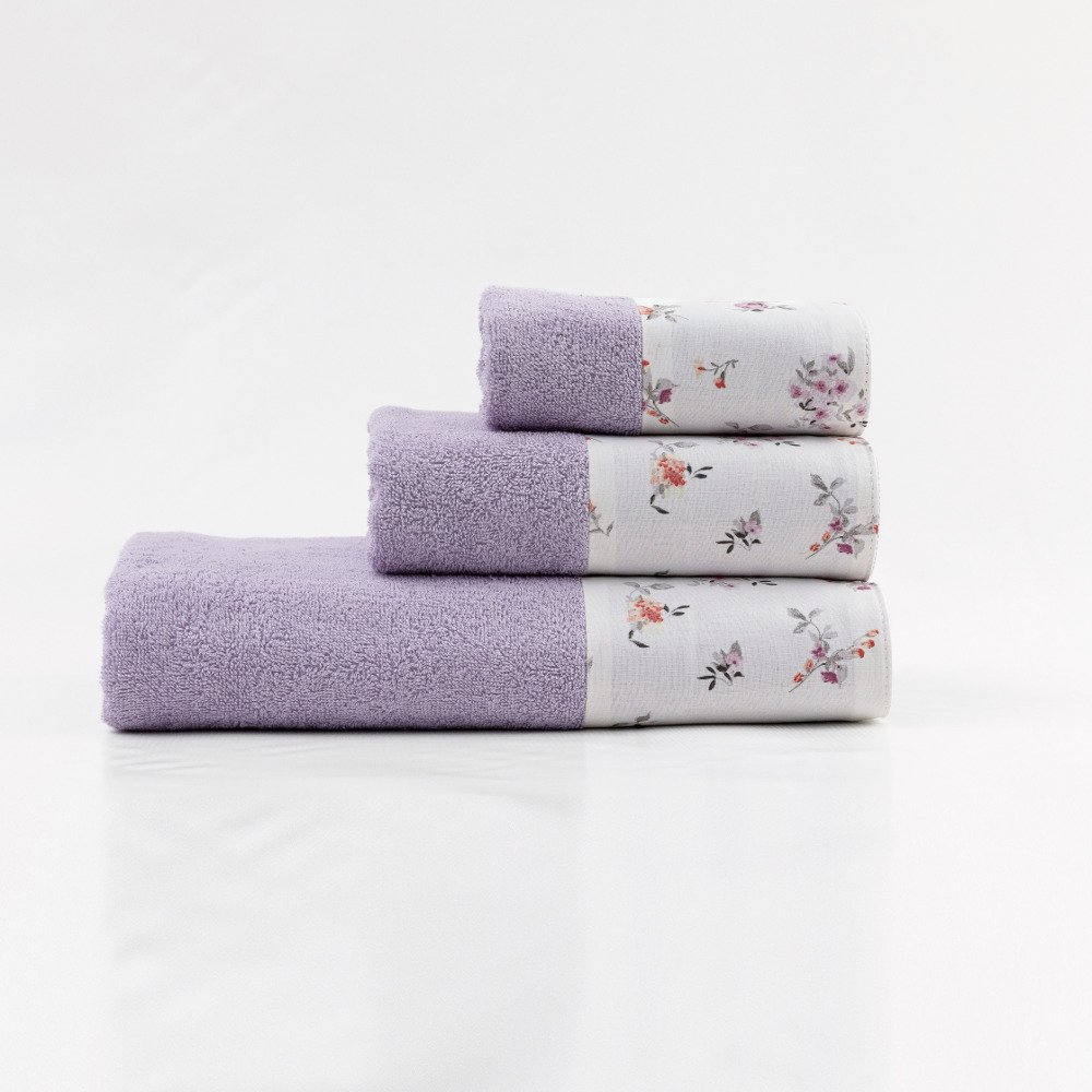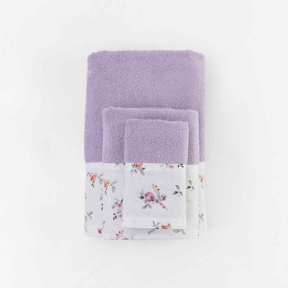 Σετ πετσέτες 3 τεμαχίων, μπάνιου, προσώπου και χειρός, από ύφασμα φροτέ, πενιέ, 100% βαμβακερό, με διακοσμητική φάσα ύφασμα.Διατίθεται σε 4 χρώματα.