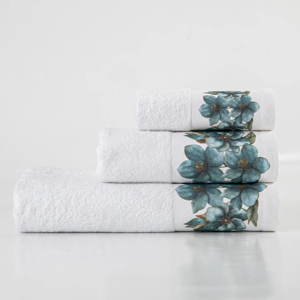 Σετ πετσέτες 3 τεμαχίων, μπάνιου, προσώπου και χειρός, από ύφασμα φροτέ, πενιέ, 100% βαμβακερό, με ψηφιακή εκτύπωση.Διατίθεται σε 2 χρώματα.
