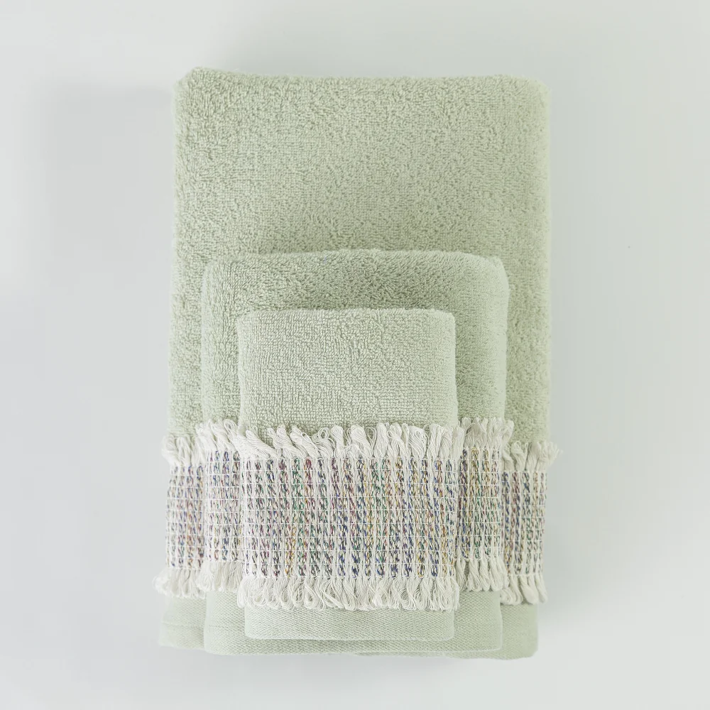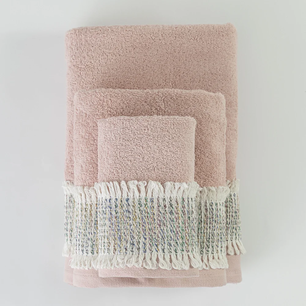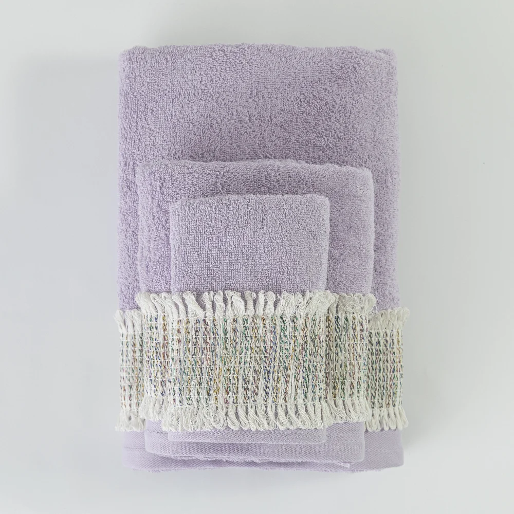Σετ πετσέτες 3 τεμαχίων, μπάνιου, προσώπου και χειρός, από ύφασμα φροτέ, πενιέ, 100% βαμβακερό, με διακοσμητική πλεχτή δαντέλα. Διατίθεται σε 4 χρώματα.