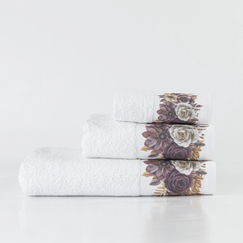 Σετ πετσέτες 3 τεμαχίων, μπάνιου, προσώπου και χειρός, από ύφασμα φροτέ, πενιέ, 100% βαμβακερό, με ψηφιακή εκτύπωση.Διατίθεται σε 2 χρώματα.