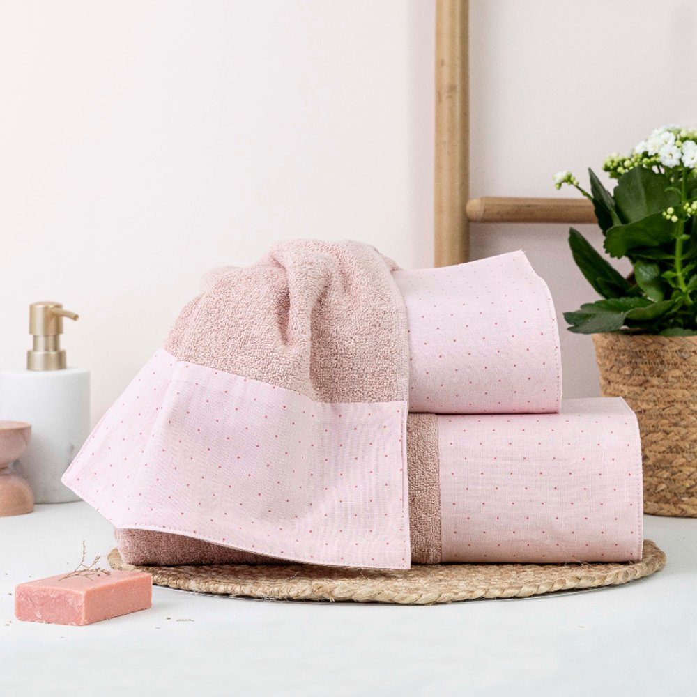 Πετσέτες Σετ 3ΤΜΧ Pois – 70 x 140 / 50 x 90 / 30 x 50 cm – Πούδρα – Borea Home Textiles
