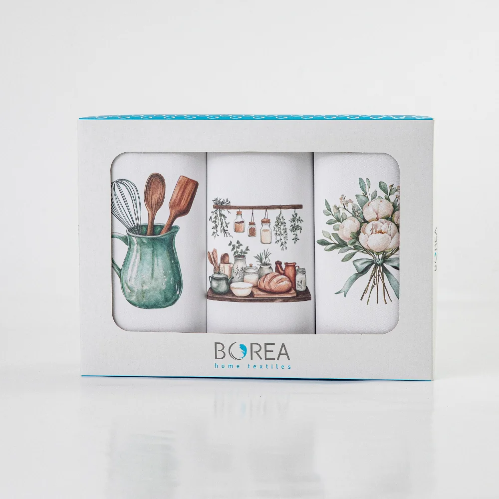 Ποτηρόπανα Κουζίνας Basilico Σετ 3ΤΜΧ – (3) 50 x 70 cm – Λευκό – Borea Home Textiles