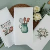 Σετ από 3 ποτηρόπανα κουζίνας polycotton, 50% βαμβακερό-50% πολυέστερ, λευκό με ψηφιακή εκτύπωση σε κουτί συσκευασίας δώρου. Για σκούπισμα των πιάτων χωρίς χνούδι.