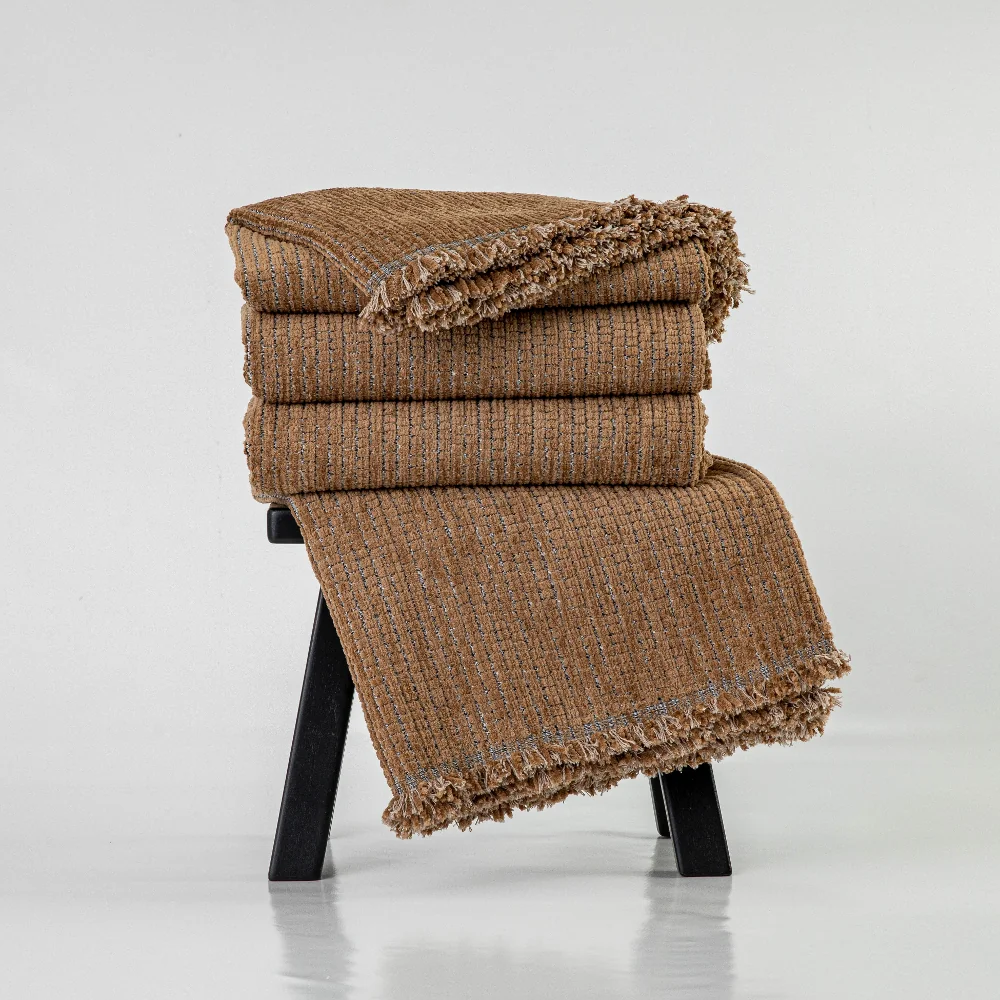 Χειμερινό ριχτάρι μονοθέσιο, από ύφασμα σενίλ, 100% πολυέστερ, εμπριμέ με κρόσσι. Διαθέσιμο σε 5 διαφορετικά χρώματα.