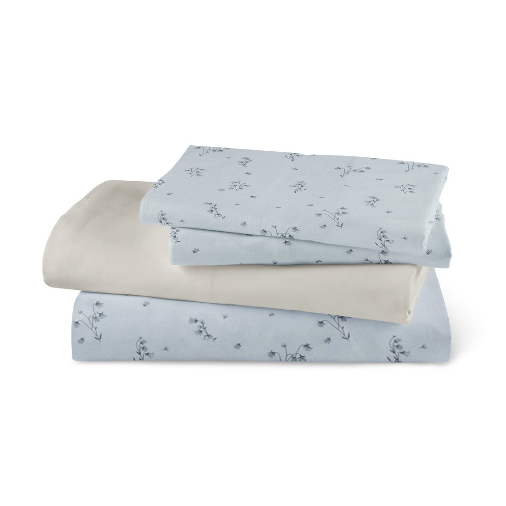 Σεντόνια Εμπριμέ Σετ Campanula Σιέλ Υπέρδιπλα – (2) 240 x 260 cm + (2) 50 x 70 cm – Σιέλ – Borea Home Textiles