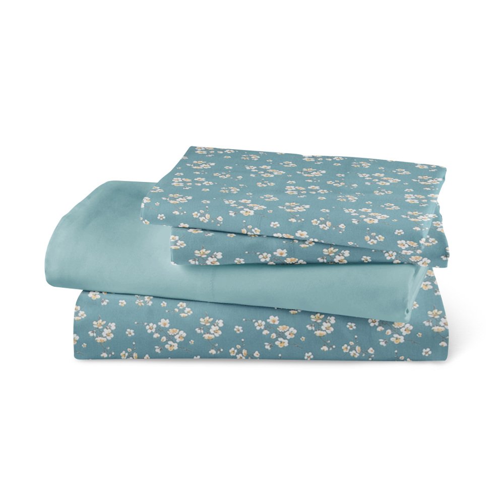 Σεντόνια Εμπριμέ Σετ Jasmine Πετρόλ Υπέρδιπλα – (2) 240 x 260 cm + (2) 50 x 70 cm – Πετρόλ – Borea Home Textiles