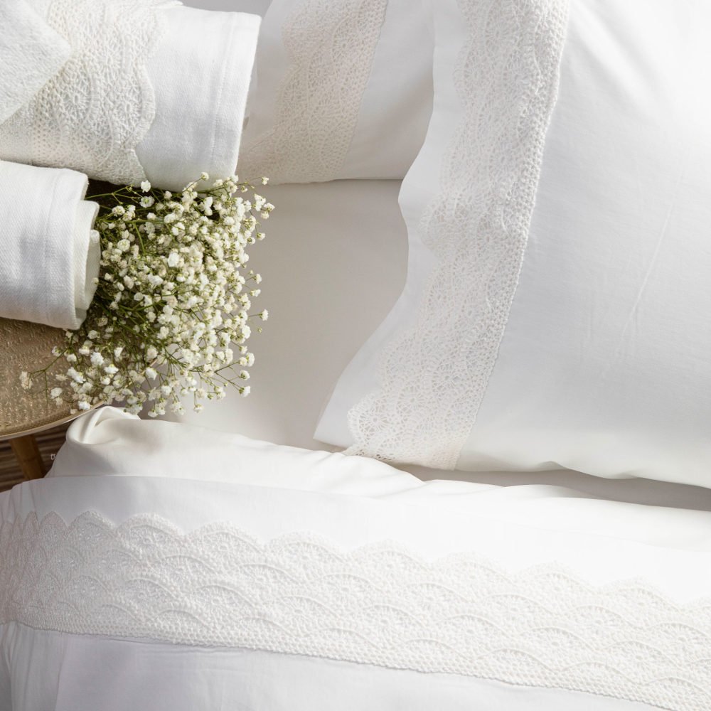 Σεντόνια Με Δαντέλα Σετ Ερατώ Υπέρδιπλα – (2) 240 x 280 cm + (2) 50 x 70 cm – Λευκό – Borea Home Textiles