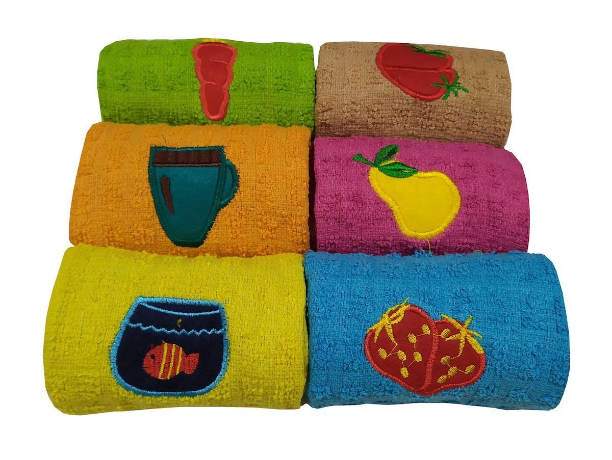 6 Ποτηρόπανα πετστέ με κέντημα 100% Cotton 40×60 σε χρώμα Ανοιχτό Πράσινο, Καφέ, Πορτοκάλι, Φούξια, Κίτρινο & Τυρκουάζ