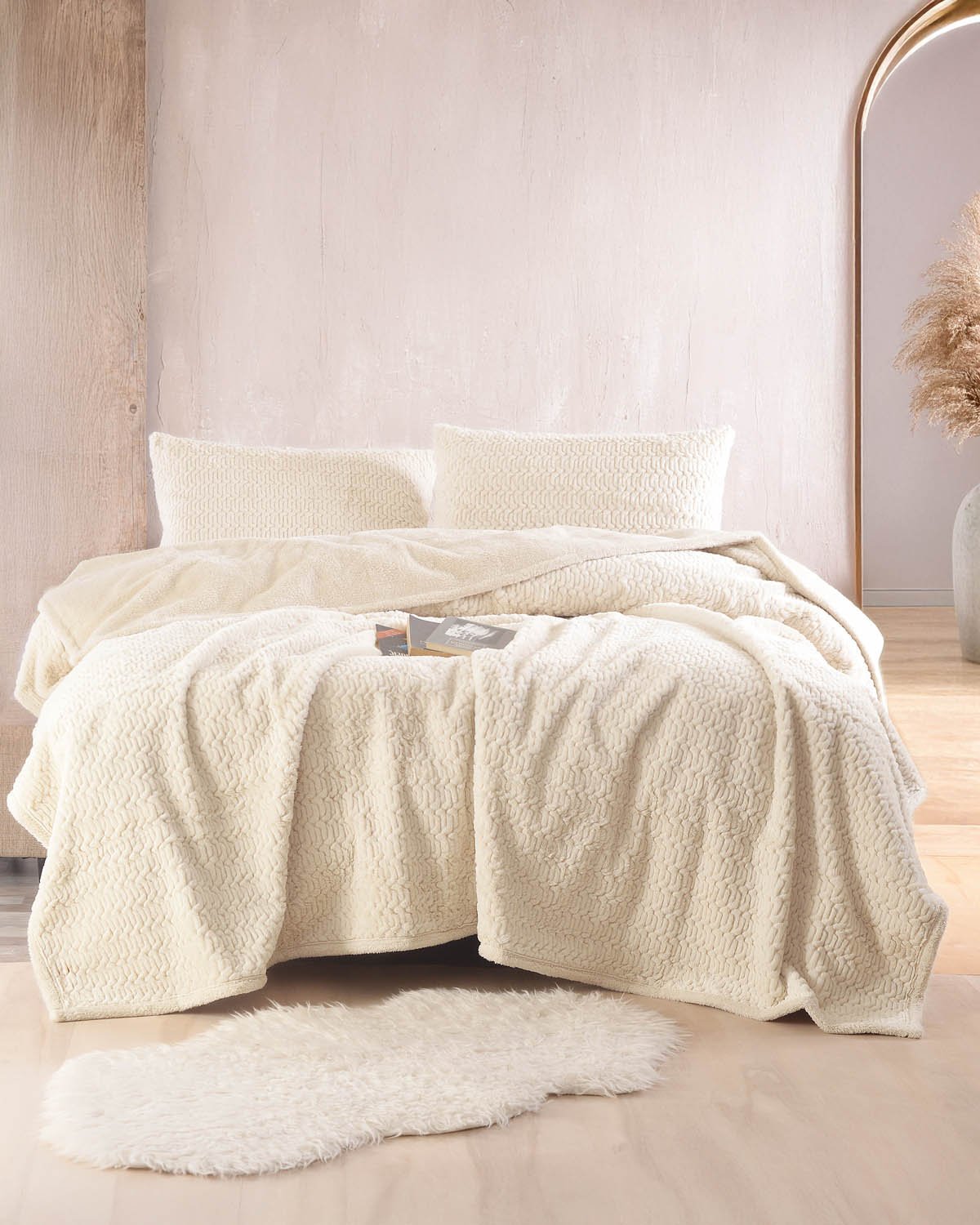 Κουβέρτα γούνινη υπέρδιπλης διάστασης 220Χ240 μαζί με δύο μαξιλαροθήκες ιδίου χρώματος και σχεδίου διάστασης 50Χ70. Το σετ αυτό που διατίθεται σε μπεζ χρώμα είναι εξαιρετικά απαλό και ζεστό όσο και ένα κουβερτοπάπλωμα και θα δώσει ένα τόνο κομψότητας και πολυτέλειας στο χώρο σας. ΑΝΩ ΟΨΗ: Jacquard Rabbit Eco Fur ΚΑΤΩ ΟΨΗ:Flannel Fleece Ιδίου Χρώματος Bάρος: 750gr/m2