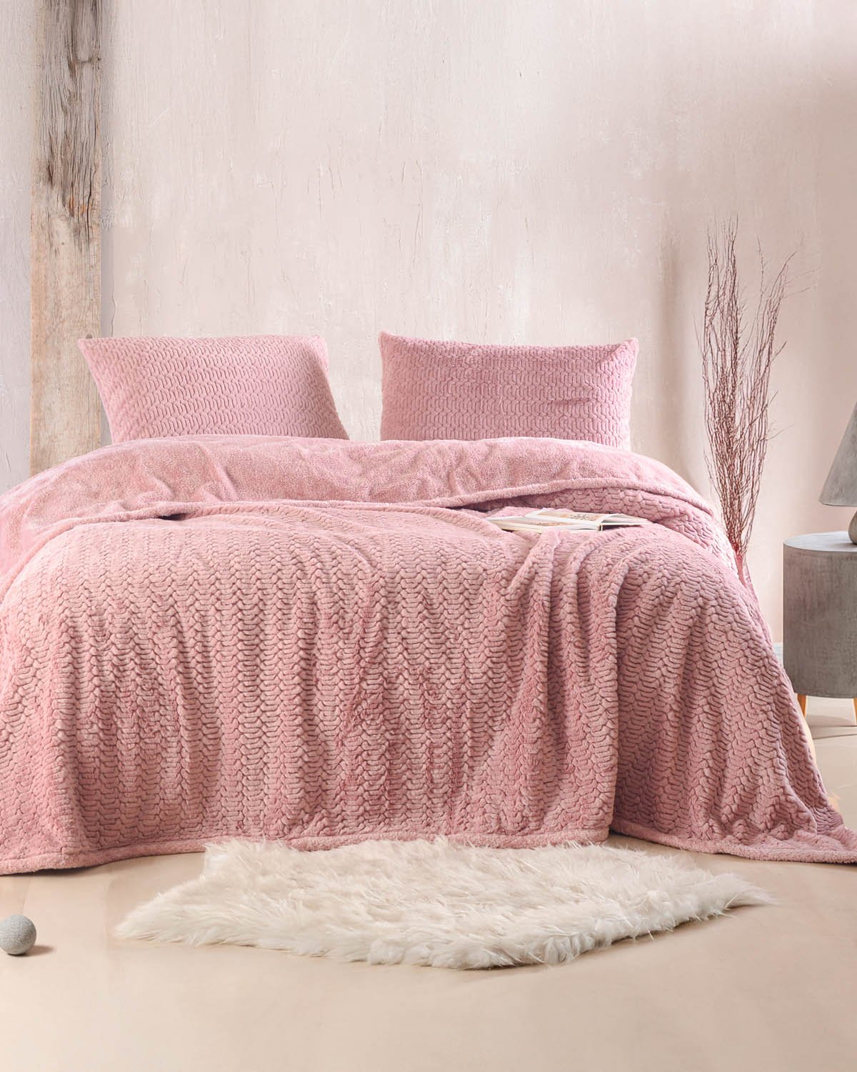 Κουβέρτα γούνινη υπέρδιπλης διάστασης 220Χ240 μαζί με δύο μαξιλαροθήκες ιδίου χρώματος και σχεδίου διάστασης 50Χ70. Το σετ αυτό που διατίθεται σε ροζ χρώμα είναι εξαιρετικά απαλό και ζεστό όσο και ένα κουβερτοπάπλωμα και θα δώσει ένα τόνο κομψότητας και πολυτέλειας στο χώρο σας. ΑΝΩ ΟΨΗ: Jacquard Rabbit Eco Fur ΚΑΤΩ ΟΨΗ:Flannel Fleece Ιδίου Χρώματος Bάρος: 750gr/m2
