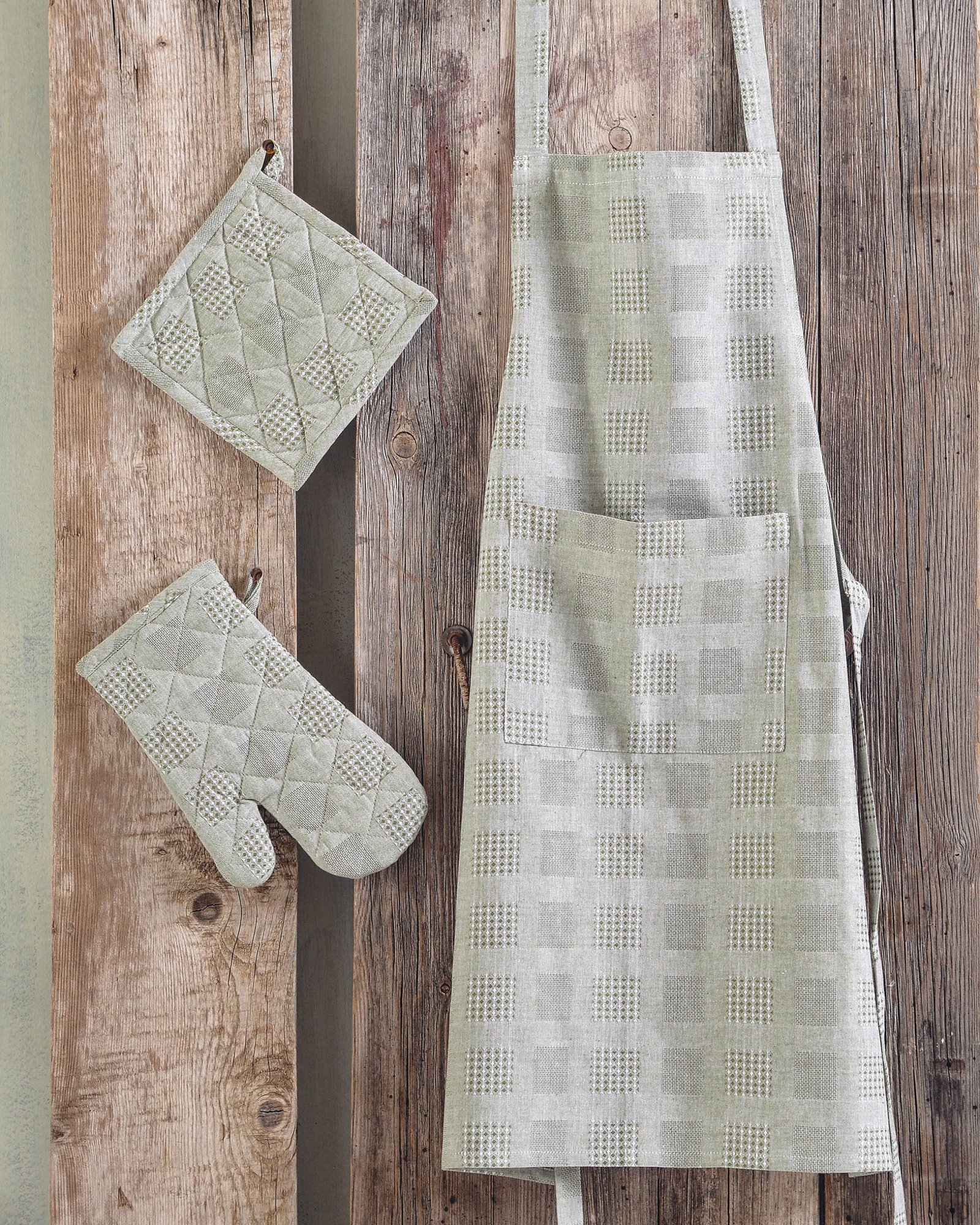 Σετ κουζίνας 3τεμαχίων – 100% βαμβάκι Περιλαμβάνει: Ολόσωμη ποδιά (60X85), γάντι κουζίνας (17X30), πιάστρα (20X20)
