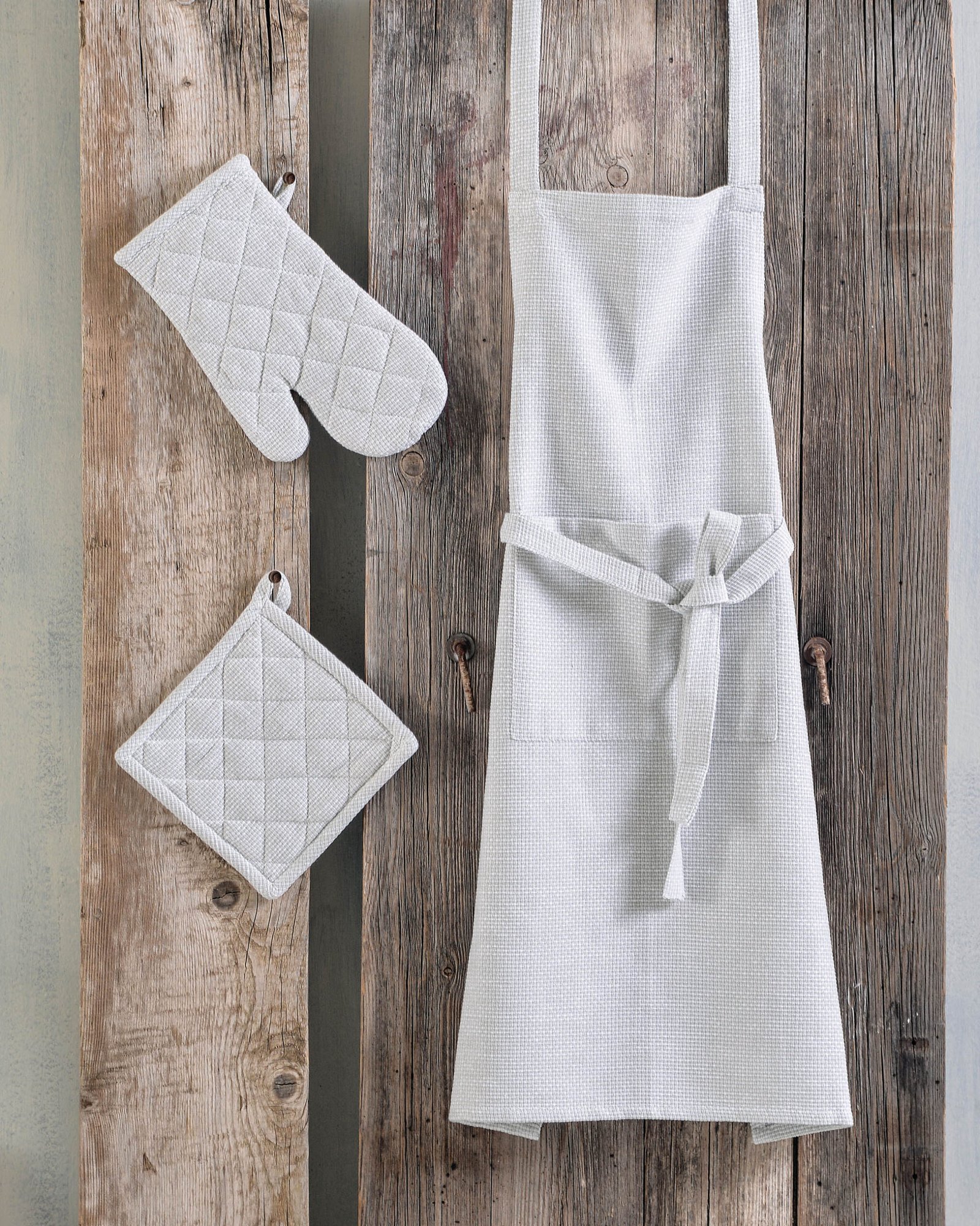 Σετ κουζίνας 3τεμαχίων – 100% βαμβάκι Περιλαμβάνει: Ολόσωμη ποδιά (60X85), γάντι κουζίνας (17X30), πιάστρα (20X20)