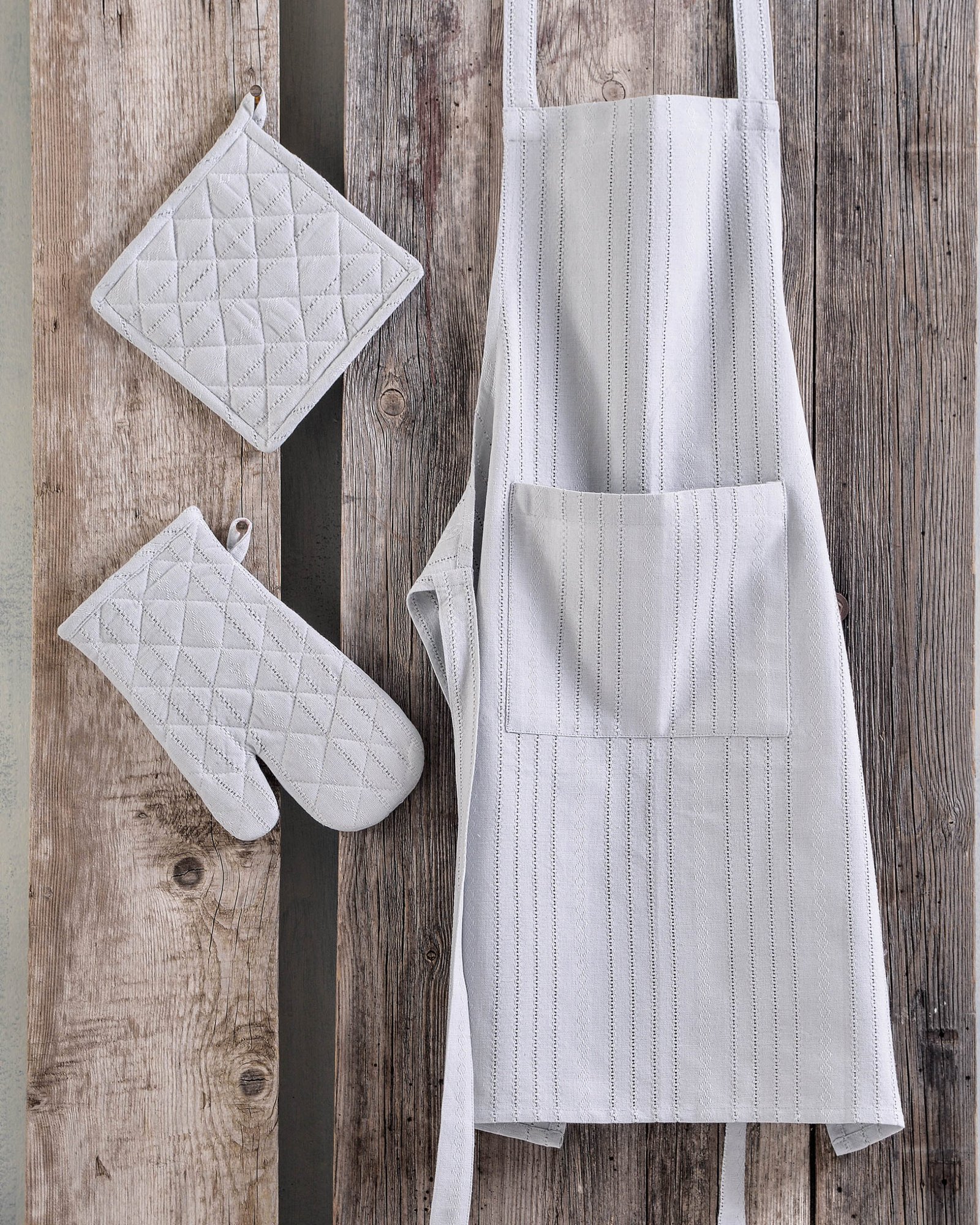 Σετ κουζίνας 3τεμαχίων – 100% βαμβάκι Περιλαμβάνει: Ολόσωμη ποδιά (60X85), γάντι κουζίνας (17X30), πιάστρα (20X20)